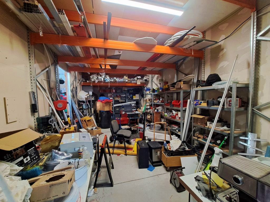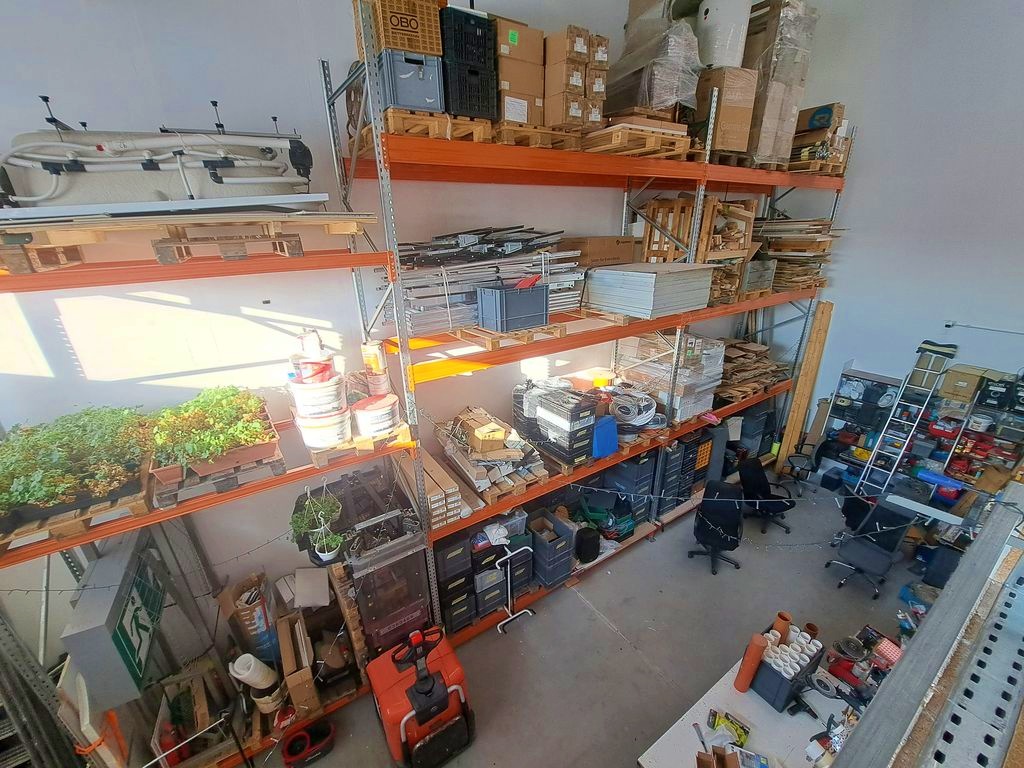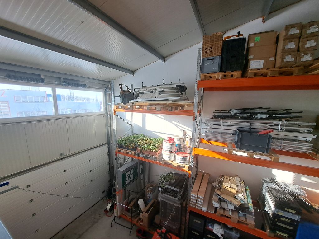 A teljes belmagasságú raktár rész polcrendszerrel felszerelt, 50 db raklap elhelyezésére alkalmas. Igény szerint az 5,4m-re emelő elektromos gyalogkíséretű targonca is, az értékesítés része lehet, egyeztetés alapján. Az ipari ingatlan az M0-ás autóút közelében helyezkedik el, teherforgalommal könnyen elérhető. Teljes színt terület így 147 m2.