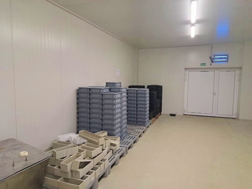 A modern új élelmiszer üzem, tartalmaz egy 1 631 m2 -es gyártó területet, valamint 490 m2 iroda és szociális blokkot. Belmagasság 3 méter. Az épület erős hőszigeteléssel rendelkezik, mert a meglévő vasbeton falakra két oldalról került, szendvicspanel burkolat.